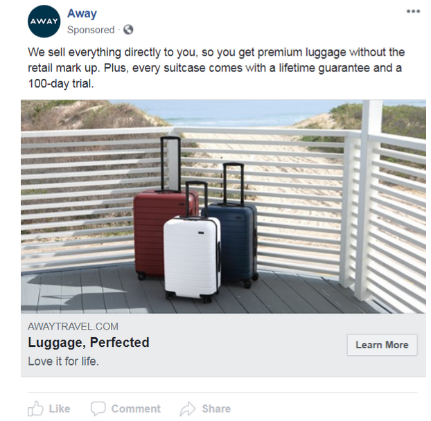 ads are shown. For example, the company AWAY shown below posted this ad before